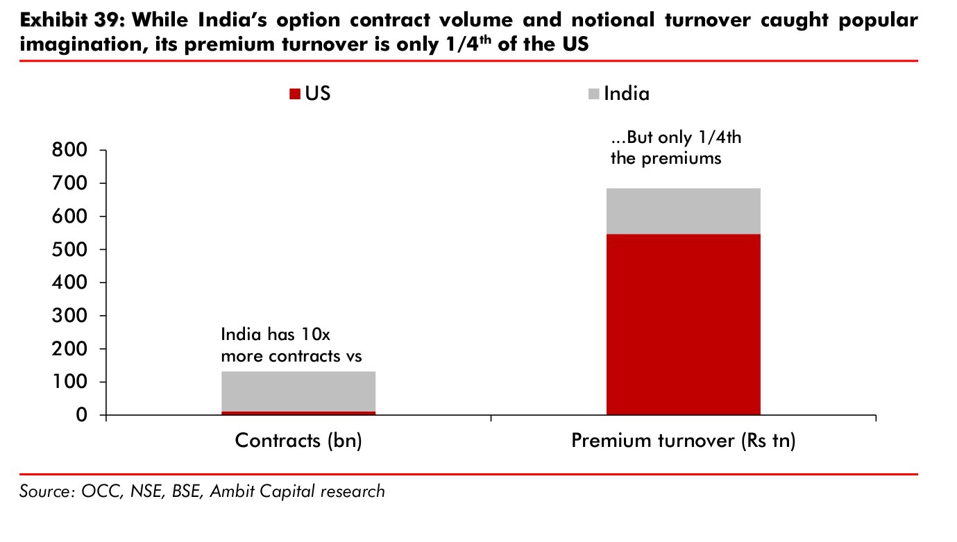 Despite all the discussions about the Indian derivative turnover, we are barely 25% of US premiums.