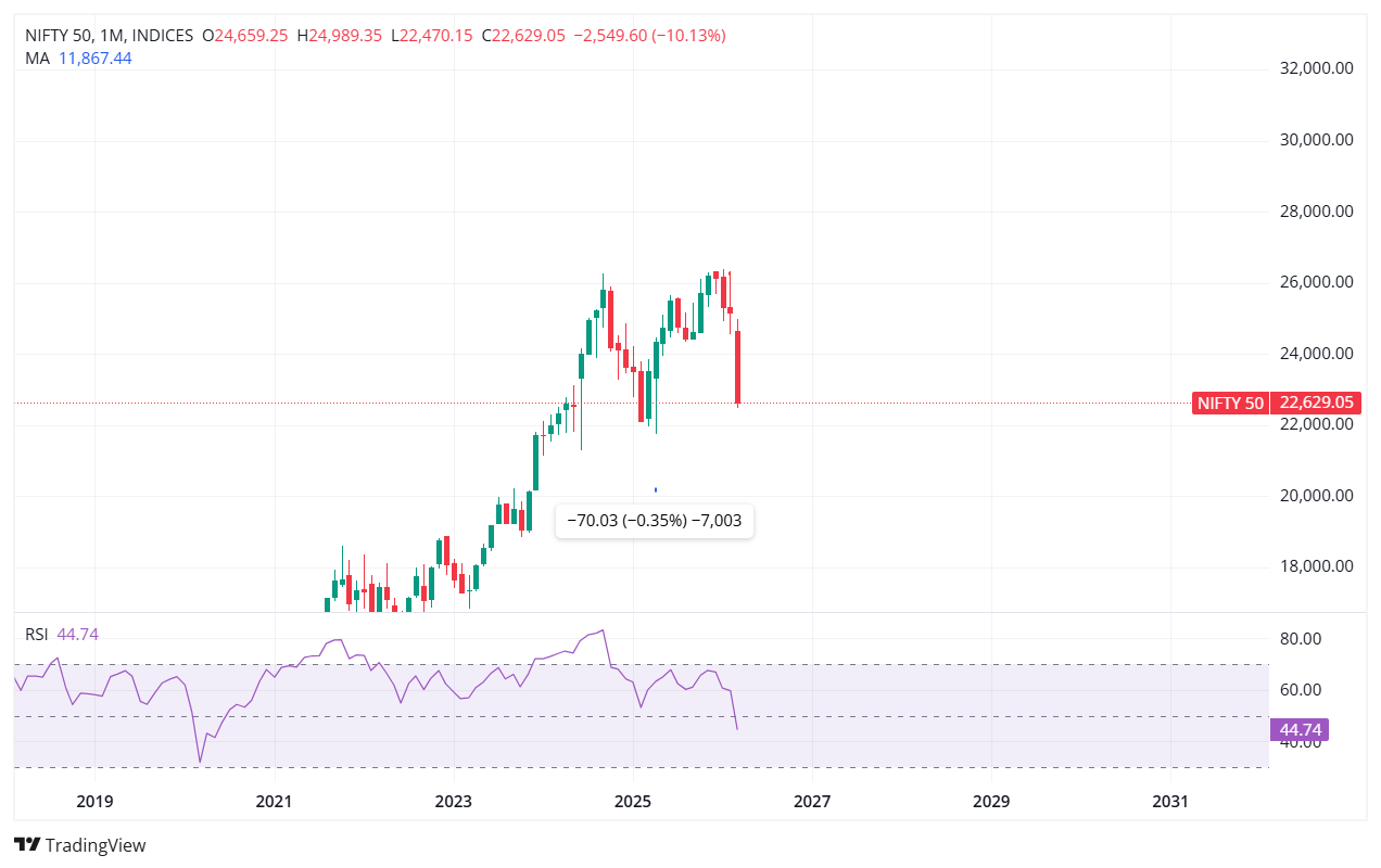 The brokerage has reduced its 12-month Nifty target to around 25,300–25,900, down from earlier projections near 29,300–29,500, a cut of roughly 14 percent.