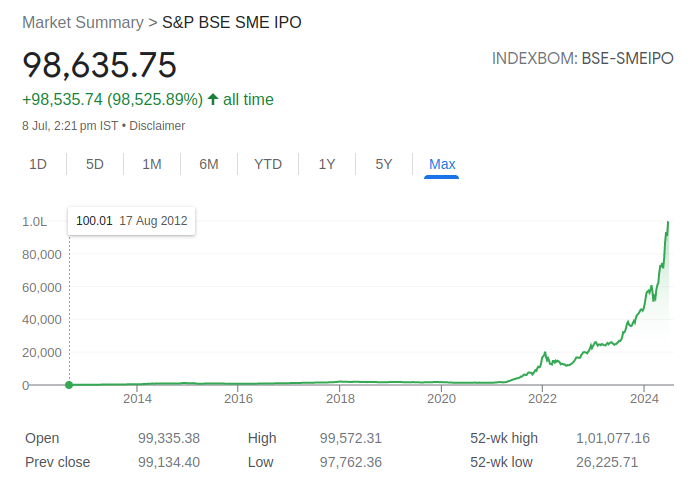 You could technically just buy all these shares and follow any new IPOs to recreate this on your own or a smallcase might could be made but the problem is this index has a large number of constituents (71 at the moment). The total value of shares in this index is 13650.89 at the moment. Not too bad, right? But don’t forget that there are SMEs and trade in lots of 1 lakh rs, so you would need a minimum of ~71 Lakhs to recreate this at the moment. Potentially require more capital if more new IPOs come faster than the current constituents aging out.