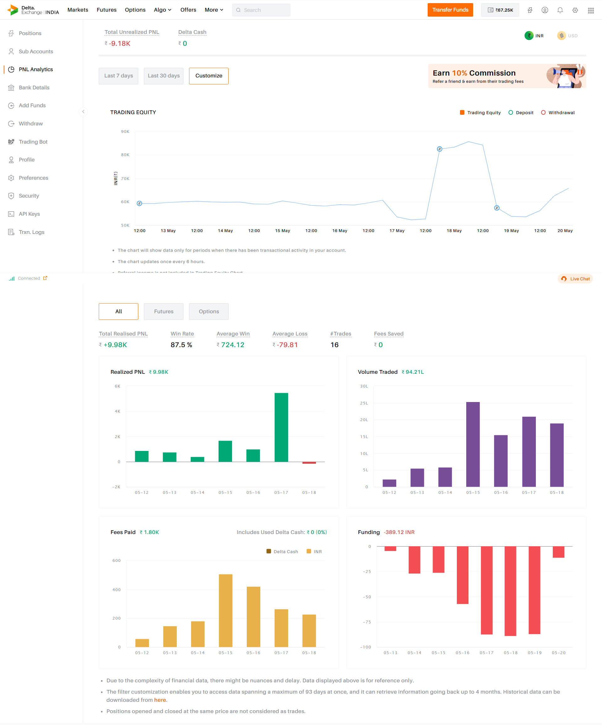 Any one trading option in delta exchange. I dont get why people are trading there. I did some calculations and the charges are 12% on option premium per each for buy and sell. Add to that such high spreads and slippage. So you would need 70% accuracy just to break even, who in there right mind is trading on these platforms and everywhere i see influencers promoting this exchange but none of them even talk about these absurd charges.