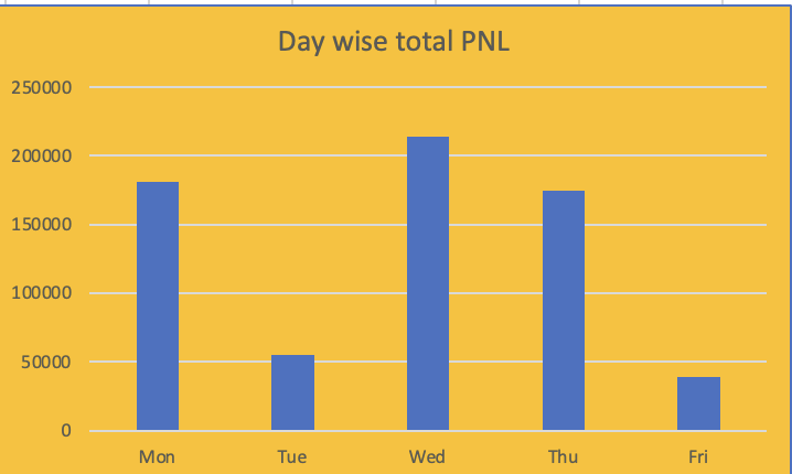 Here’s day wise total profits, Wednesday are the days it has generated highest profits compared to all other days and Friday being the least profitable day.