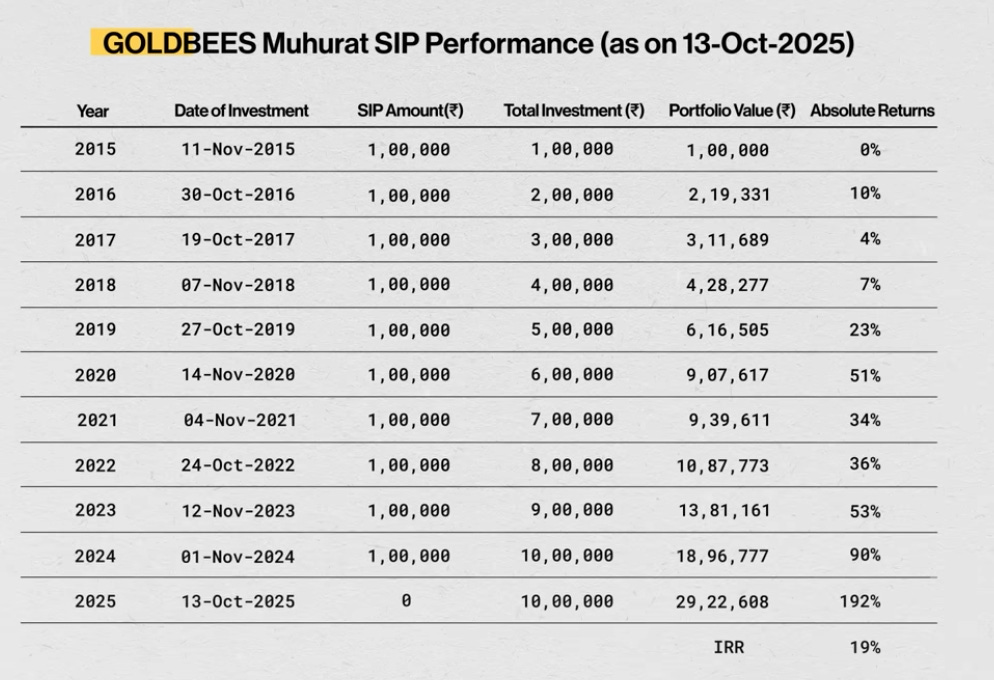 Strategy 2: Investing ₹1 Lakh in GoldBees Every Muhurat Day