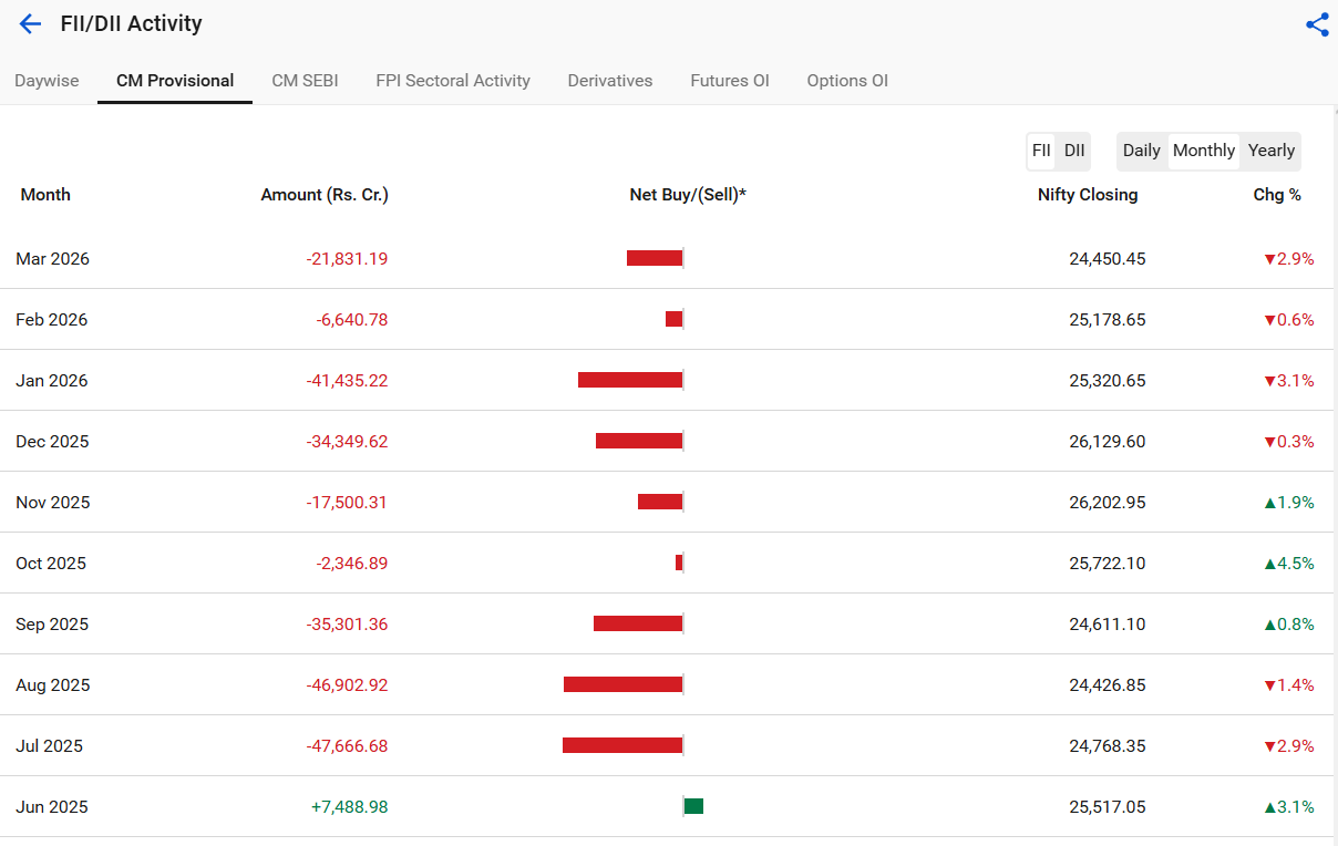 Was looking at the FII/DII data and FII has been selling non-stop for many months now.