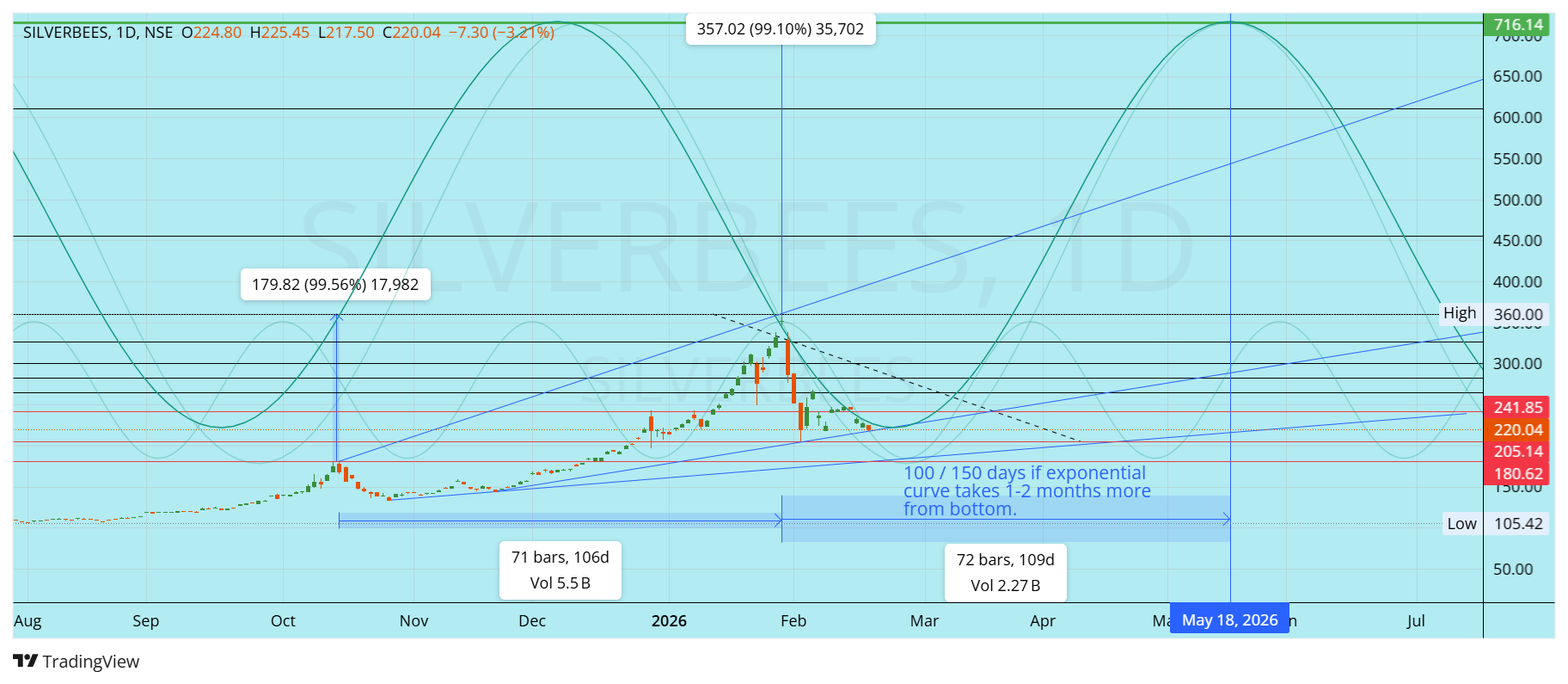 I know many here believe TA does nt work and its all random / newsdriven. Fair enough. But I think Silver is setting up for a strong move and could cross 700+ (silverbees i mean) in the coming months based primarily on structure and not macro news (though news helps most of the time). for context silver is now around 233 inr per gram.