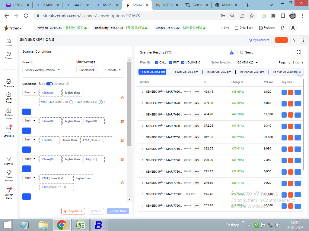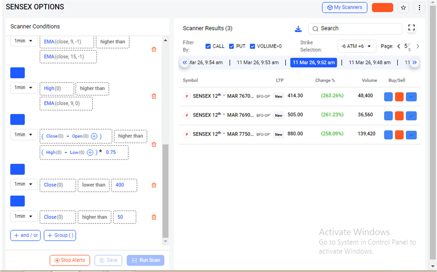 The issue is that I am getting multiple scan results for the same candle/event. For example, when a candle closed at 03:28 on 13 March 2026, I received duplicate signals again at 03:29, 03:30, and 03:31 for the same setup.
