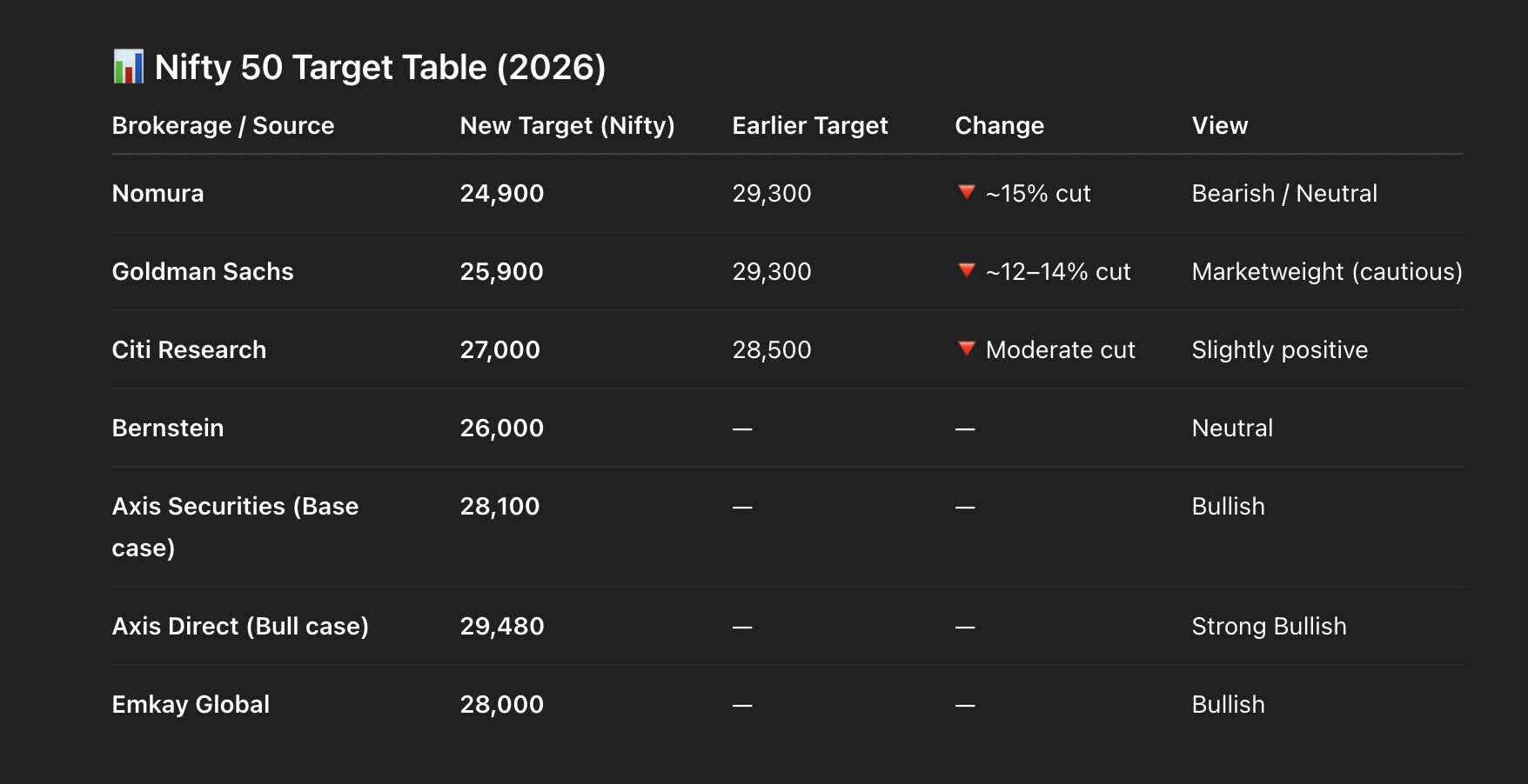 Global Brokerages View on India (2026) - Downgraded previous targets