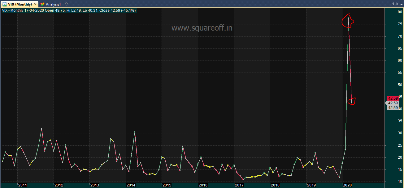 Nifty dropped like a stone in March 2020, hitting lower circuits and reaching 7500 levels. If the VIX had continued like that, we could have faced more correction and Nifty would have undergone a much steeper correction.