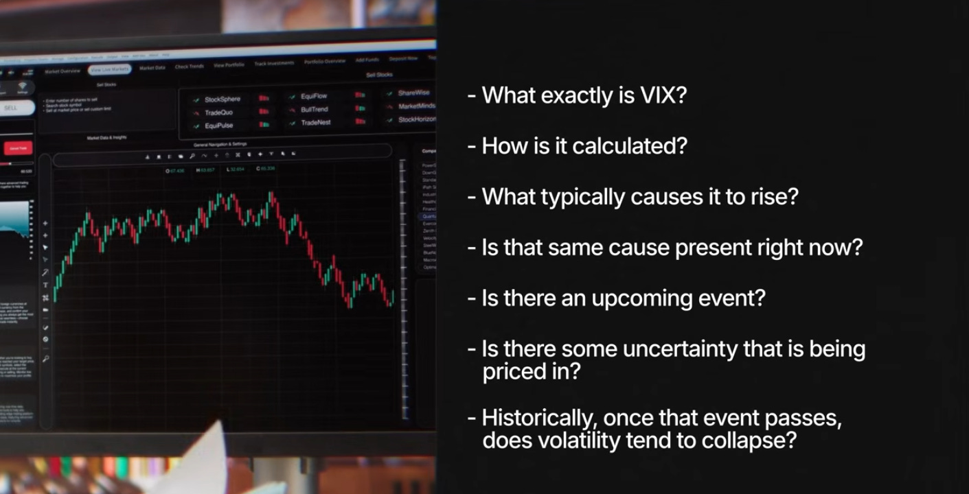 Going back to the rising VIX example—to move beyond the observation stage, you should start asking some relevant questions: