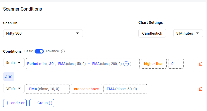 Hi Team, I was looking to setup a scanner with multiple conditions.