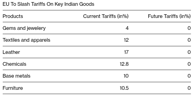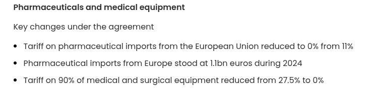 On pharma, India dropped tariffs on European pharma imports from 11% to zero , while the EU also reciprocated similarly. However, the EU’s data exclusivity clause was excluded .