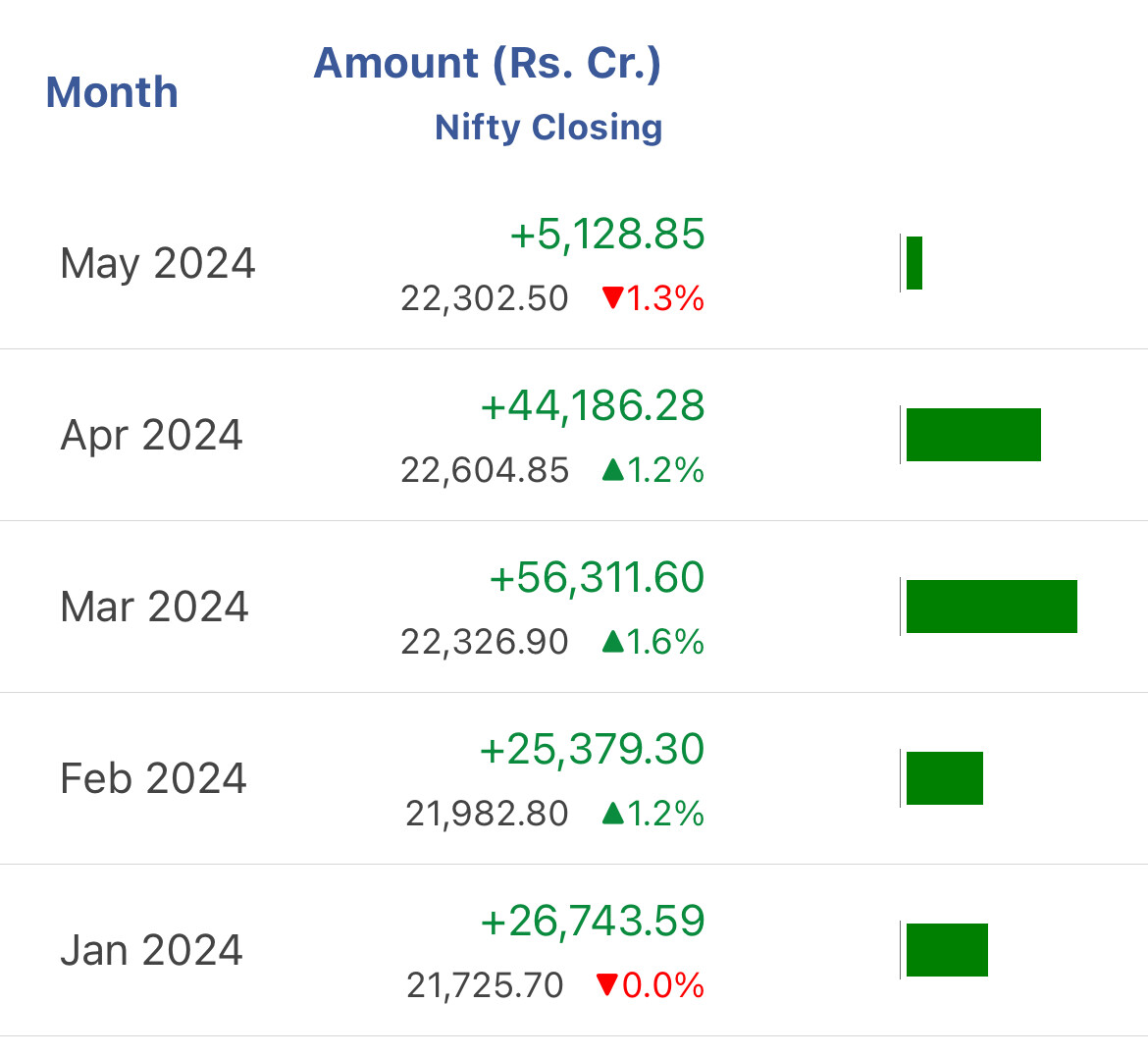 And then there are ofc lumpsum investments and Direct Retail Investors. Lets put the monthly ammunition atleast 25,000+ cr per month.