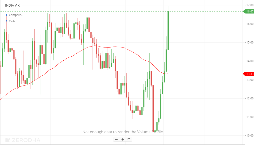 India VIX is up by nearly 70% from 10 to 17 in the last 8 days. @siva, it seems like finally the election factor is playing out in the market. VIX more or less getting to normalcy