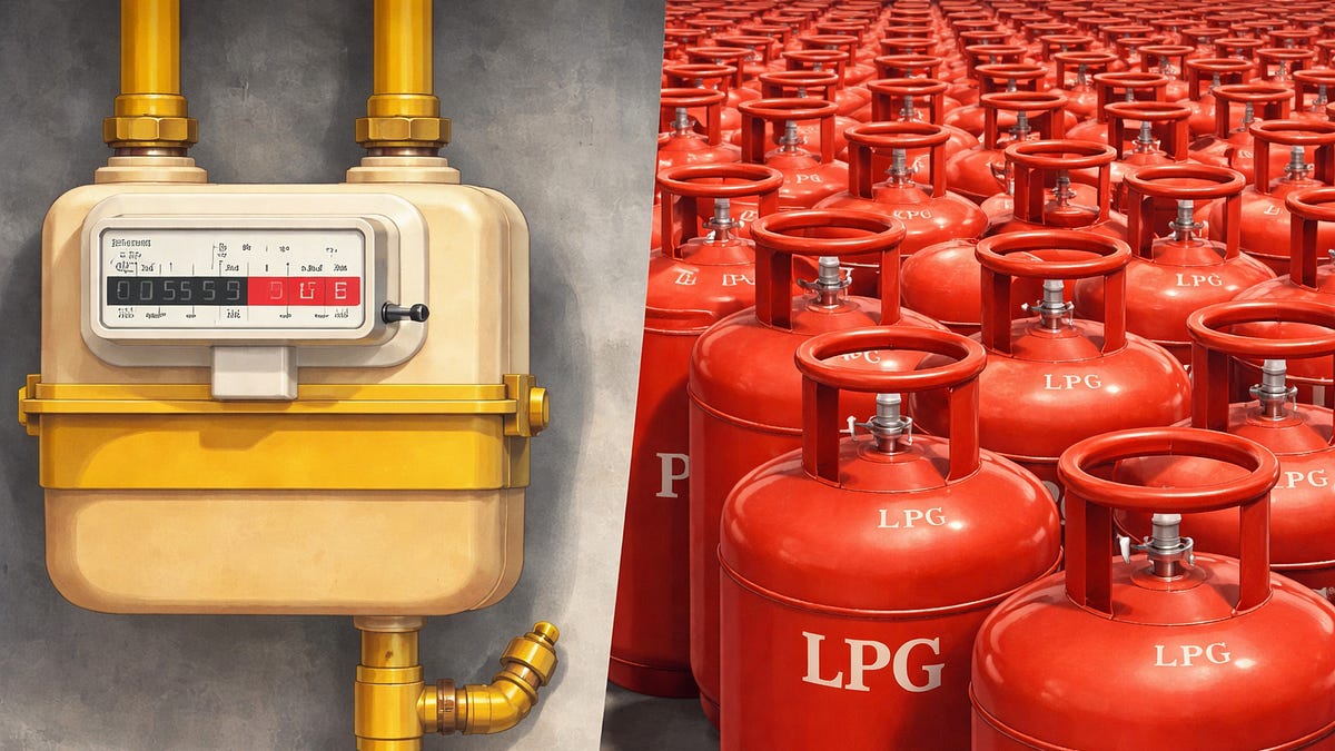 The trigger, of course, is the Iran War. India imports about three-fifths of its LPG, and roughly 90% of those imports transit the Strait of Hormuz — which has now been choked for the better part of a month. This caused cylinder shortages, 45-day booking gaps, and black-market prices of ₹4,000 per cylinder, forcing the government’s hand.