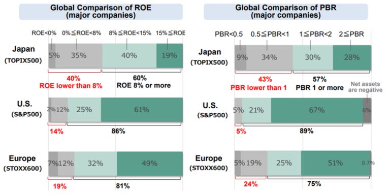 This is not normal. In the U.S., for instance, only about 5% of S&P 500 companies traded below book value in that period. Japan’s chronic undervaluation signaled a “ Japan Discount ” . It was an existential issue for Tokyo’s market attractiveness.