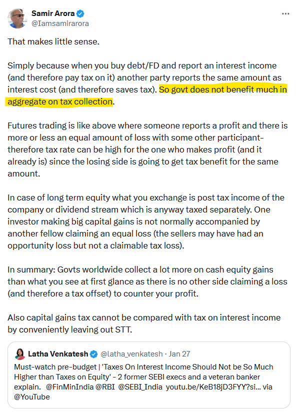 The Argument: “In case of long term equity what you exchange is post tax income of the company…”