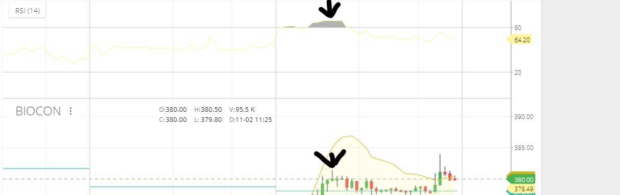 Before anything else, understand this chart below. Time is 11:05 am Timeframe 10 min charts RSI 88 ( “in that particular” moment 90 something) The first arrow is indicating RSI and second one the candlestick
