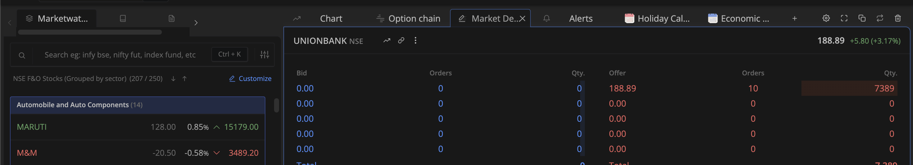 - chart and market depth are not linking if they are positioned in this sequence. hope you will link option chain too.