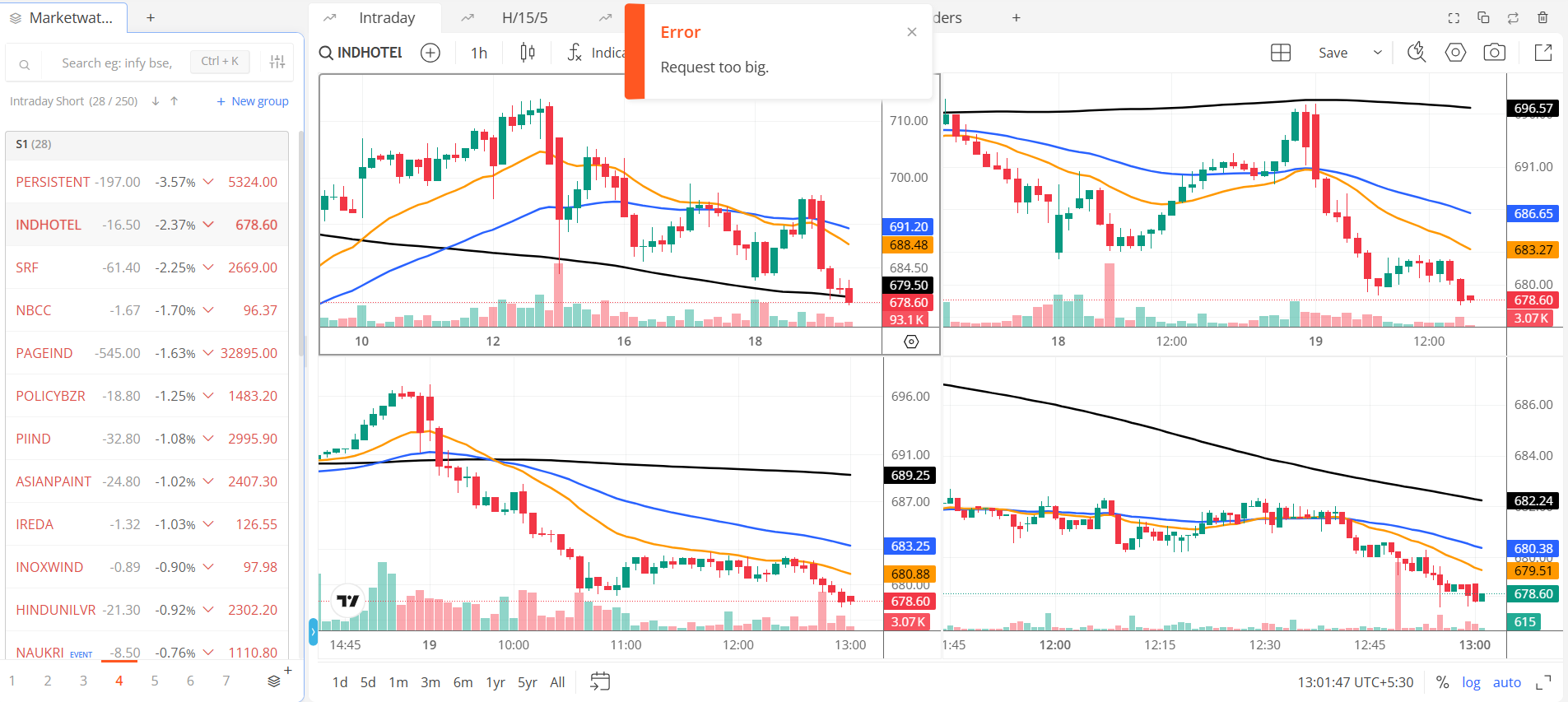 One more issue, its throwing request too big while using multi chart layout in this case I am using four chart layout.