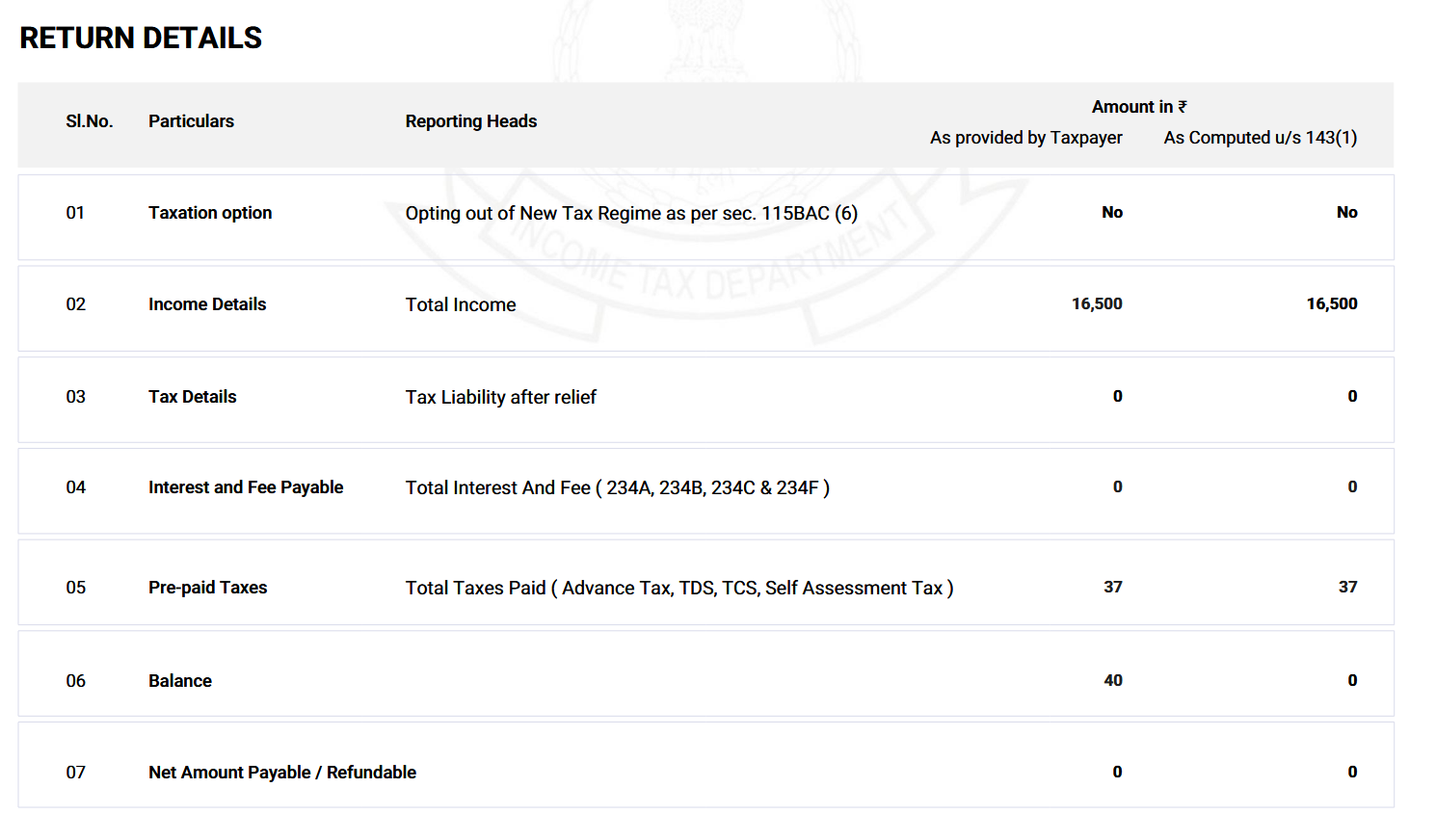 So I have an HUF account and the total income for FY 2024-25 was about Rs. 16,500 (all short term capital gains & dividends). Dividends from shares were Rs. 360. No other income.