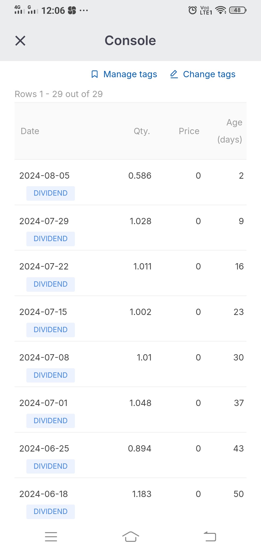 I have 1000 units of liquid bees, I have getting the dividend weekly, all the week I have received average of 1000rs, but this week I have received only 586rs only. How should calculate the dividend returns and how to check the returns on weekly. Please help me out. I have attached screenshot also