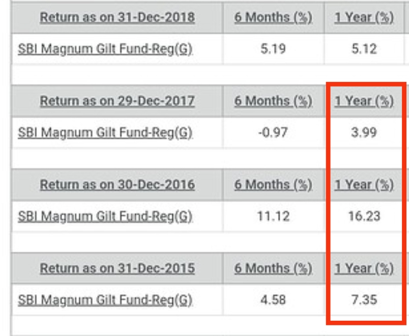 IMO, If you stay invested in such gilt funds, it would eventually average out the returns bringing it close to normal expected return, is it not?
