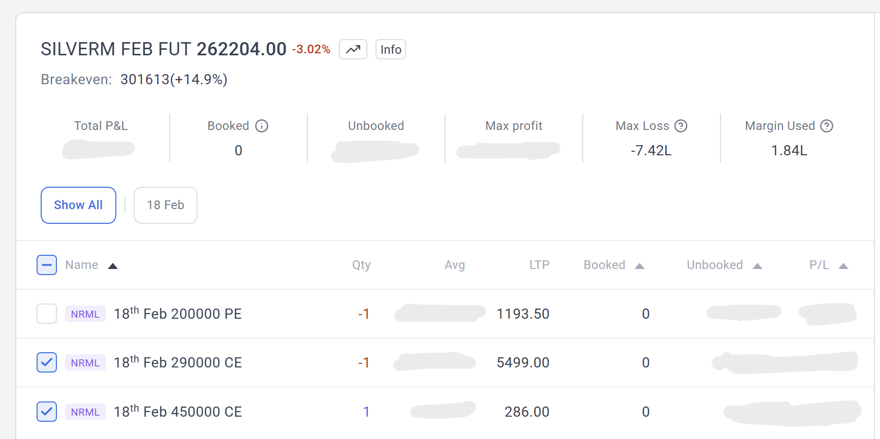I’m getting confused over here because only if I select the respective position and check the margin used it is showing 10,690. But whereas if I select the other two positions, the margin is showing 1.84 L