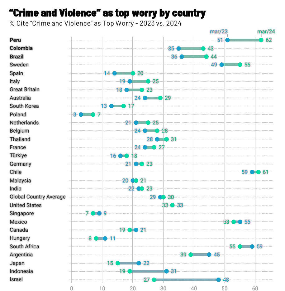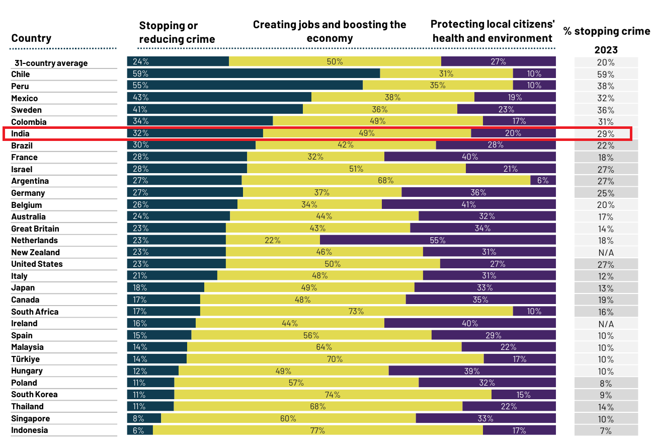 In India, apparently around 20% of survey respondents were primarily worried about crime and violence. This has been a consistent number over the past 2-3 years.