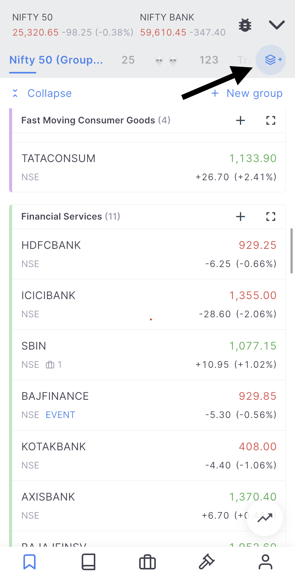 Expand/Collapse Groups: Quickly expand or collapse all groups in your Marketwatch—helpful when managing multiple groups. Collapse all and expand only the group you need.
