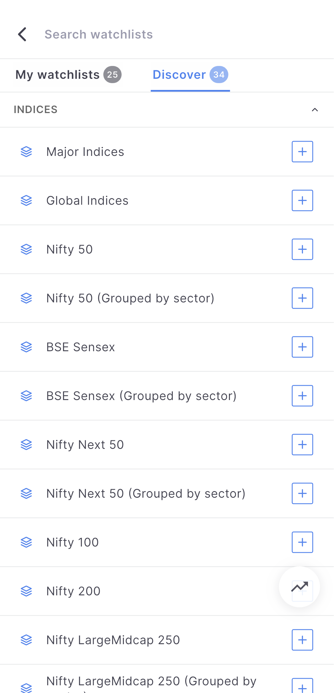 Infinite Scroll: Scroll continuously through watchlist tabs—reaching the last watchlist automatically loops back to the first. Select watchlists directly from “My Watchlists” in the Discover section.