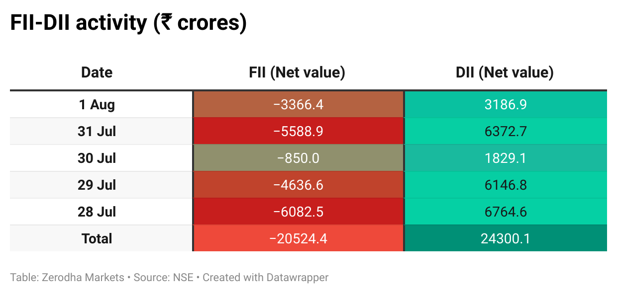 Overall sentiment remained cautious due to weak global cues, continued FII outflows, and muted reactions to earnings. Investors are now focused on upcoming corporate results and India’s potential response to US tariffs, with trade developments likely to influence near-term market direction.