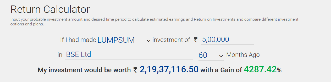 if you buy BSE shares 1 lakhs in 2021 - now its worth 44 lkahs