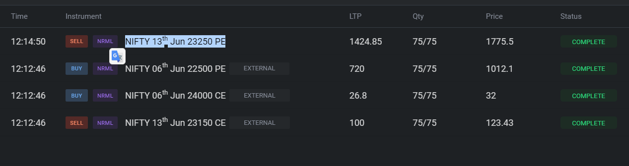 I tried to close out all my trades on Kite in one go, but my “NIFTY 13th Jun 23250 PE” position didn’t go through. After waiting a few minutes, I gave it another shot, and thankfully, it worked that time, so I managed to exit the position eventually. Could it be that odd multiples of 50 don’t get traded much, which makes them harder to sell? I’m new to selling, so any insight would be really helpful!