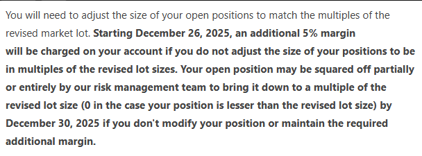 We see that you have several contracts nearing expiry. While the December 2025 contracts aren’t an issue, you do hold multiple quarterly contracts for March, June, and December 2026. Please note that the lot size for these contracts will change from 75 to 65 after December 30th 2025.