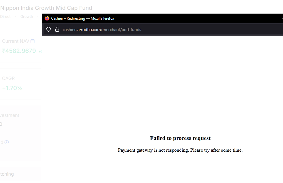 I’ve been facing a repeated issue while trying to invest in mutual funds on Coin. Each time I reach the payment page, the system shows an error: “Failed to process request.”