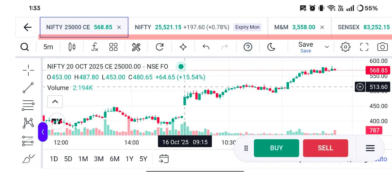 I also use Angel One and found that they have charts with switch options, where I can have Nifty spot and their options contracts opened just like browser TABS, and I can change the charts with one click instead of going back to the watchlist section