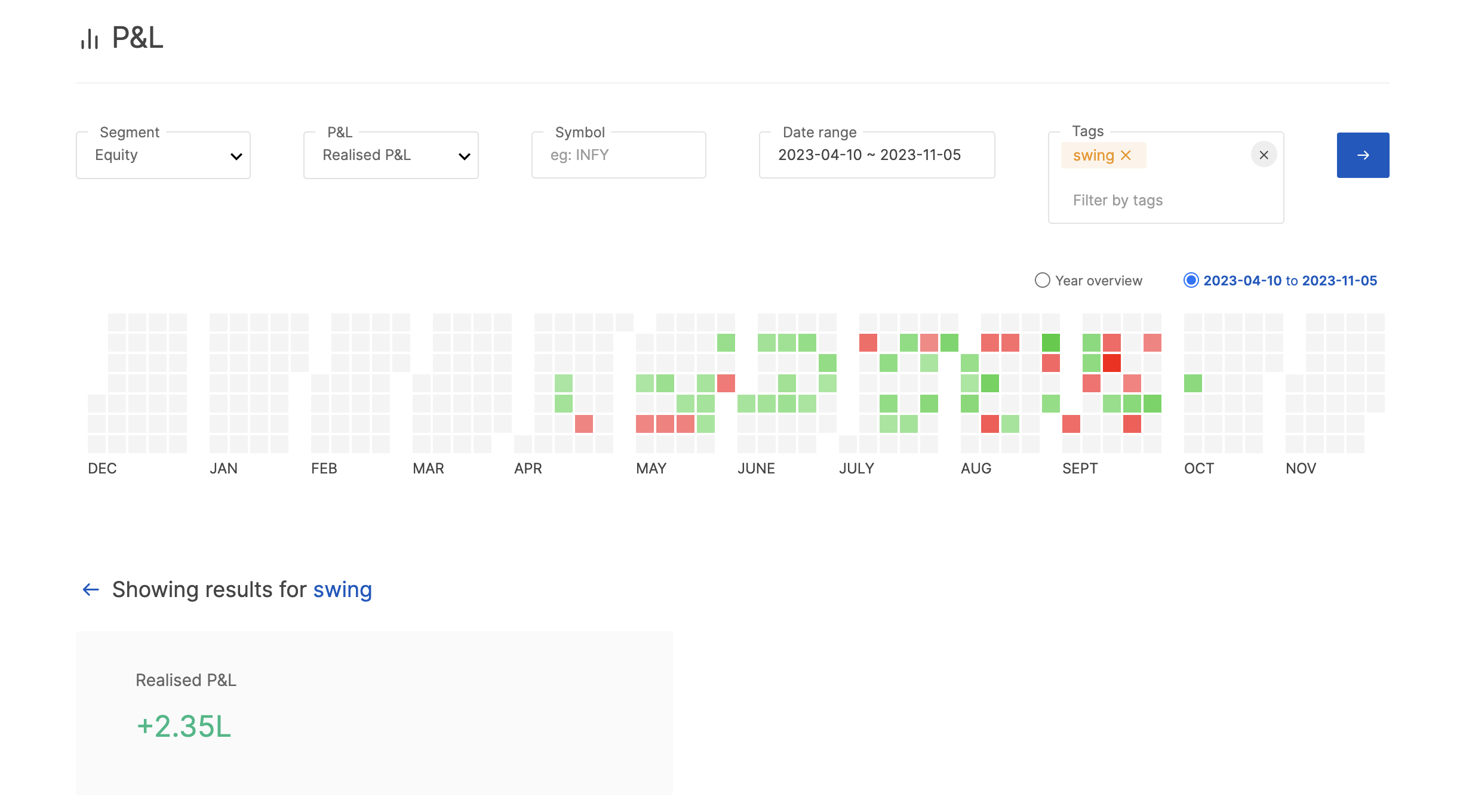 As you can see above when I select the tag for P&L it does not show up the charges and taxes. It would be nice to know the charges as I trade in different trading strategies and to document my charges on weekly/monthly basis for each strategy.