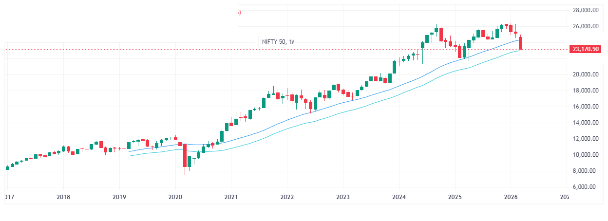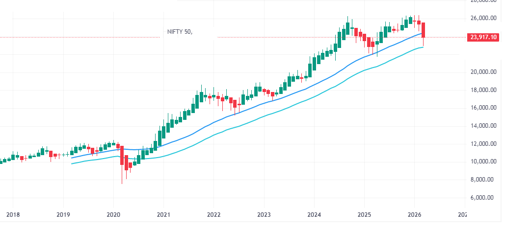 On a very long TF , a Red candle has formed on Nifty Chart , almost after 10 Year , don’t know the implication , it may be very negative impact on Nifty ![]()