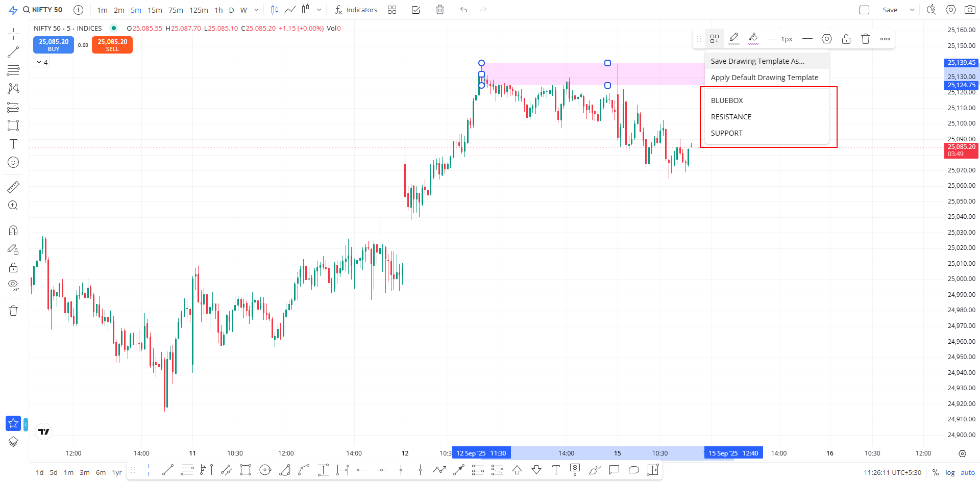 Drawing templates get saved using the save option and is available immediately after saving. But, after using all available “save” options (drawing template save, chart template save, default template save), if the page is refreshed or a new window is opened, the “loading” animation is displayed.