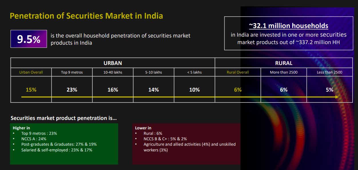 Get this - 63% of Indian households (that’s 213 million!) know about mutual funds, stocks, F&O, bonds, etc. But only 9.5% actually invest. That’s just 32 million households. Urban folks are ahead at 15% vs rural at 6%. Delhi leads at 20.7%, Gujarat at 15.4%.