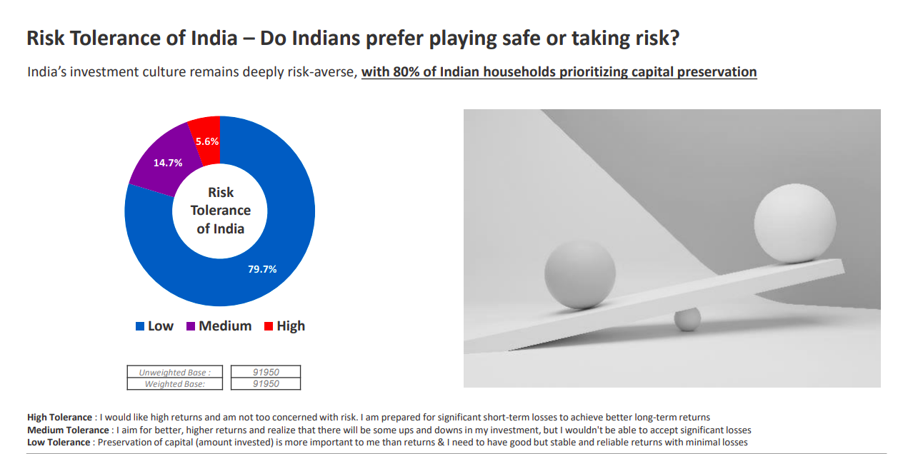 Almost 80% of households prefer keeping their money safe over chasing higher returns. And here’s what surprised me - even Gen-Z is 79% risk-averse. So much for the “young people take more risks” theory.