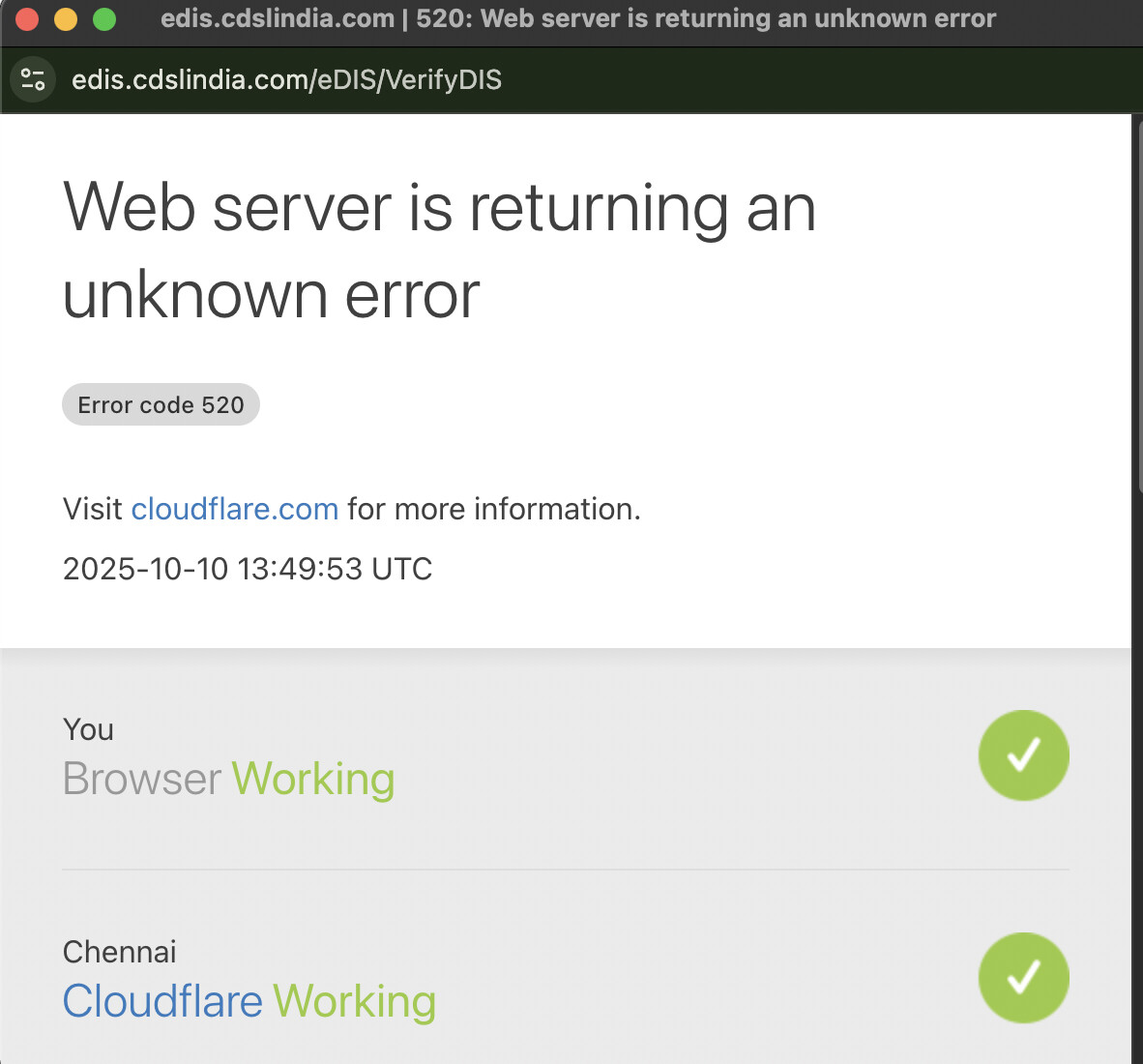 This looks like a CDSL error. We see that transfers are going through without any issues. Can you let us know if this is still happening? If yes, we can escalate the issue.