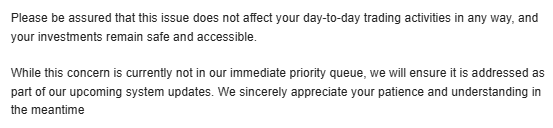 And if it came to that where bugs are not getting fixed after a year - i can always move to Dhan or some other broker. i am already exploring other options as well. I dont really mind having investments in different brokers - as long as i dont have to face the hassle of bugs.