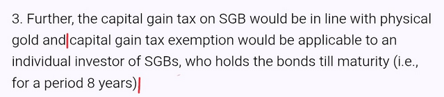 In any case, looking at similar such clarifications to financial acts in the past, that were unfavorable to a majority of individuals, personally i feel that there is a small but significant chance of relief by relaxing the SGB taxation to grandfather folks that have purchased/sold SGBs prior to a certain date. Let’s see…
