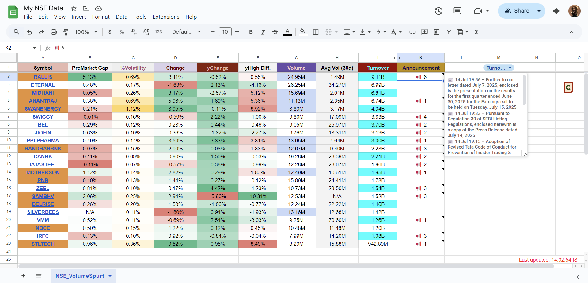 Feels like you might be judging the sheet just by the column names. Thereās a lot going on under the hood. For example, the way I calculate volatility isnāt the same as TV. And yHighDiff? No app gives that directly ā sure, you can calculate it, but for someone like me trading manually, every second saved matters.
