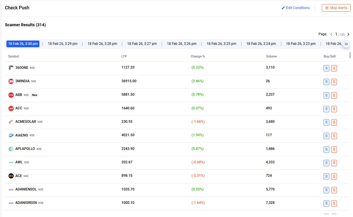 To receive real-time alerts, please enable push notifications from your Profile section on the platform. Once enabled, you will automatically receive notifications whenever your scanner conditions are met based on the selected timeframe.