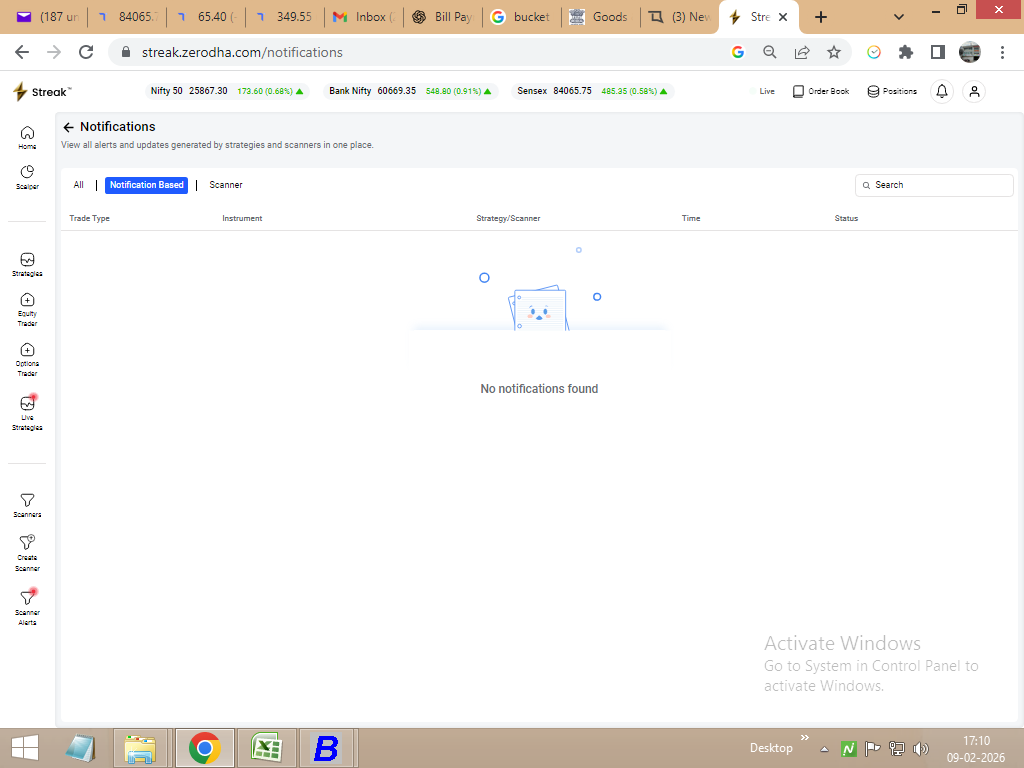 For your second query, Streak is exclusively available for Zerodha users and does not require any subscriptions of now. Please note that automated order execution is currently not supported.