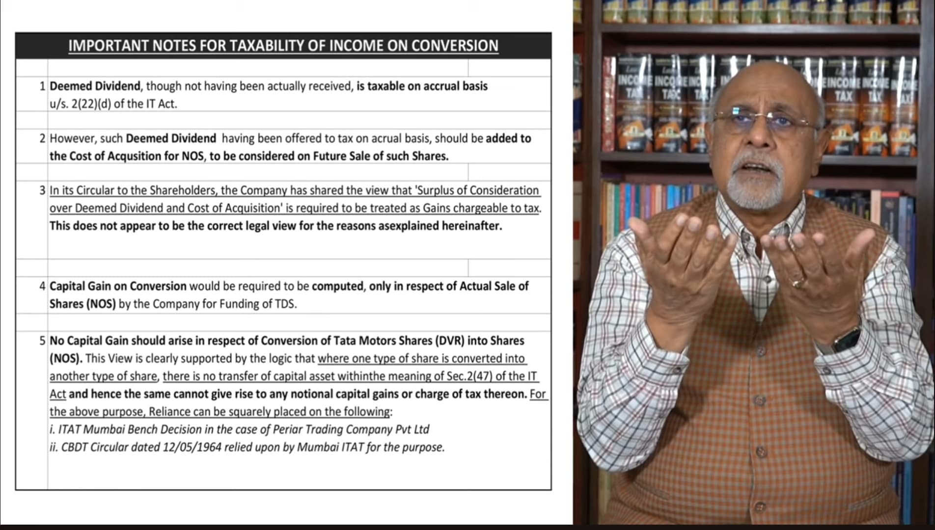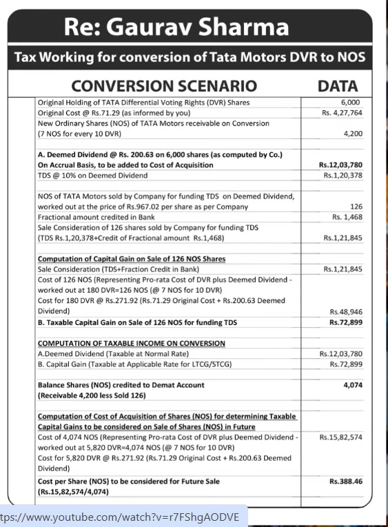 As you can see in Note 3) in the video, the host, seems to disagree with the circular issued by TATA motors to its shareholders regarding the tax implications of cancellation of the DVR shares.