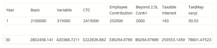 Note that even sovereign govt. bonds have been providing around 7-8% returns with the interest income being taxed (unlike EPF so far). So, in that sense, any contribution to EPF above 2.5L in a year is like (not exactly, but very similar to) being guided to purchase a sovereign govt bond and pay taxes on the interest.