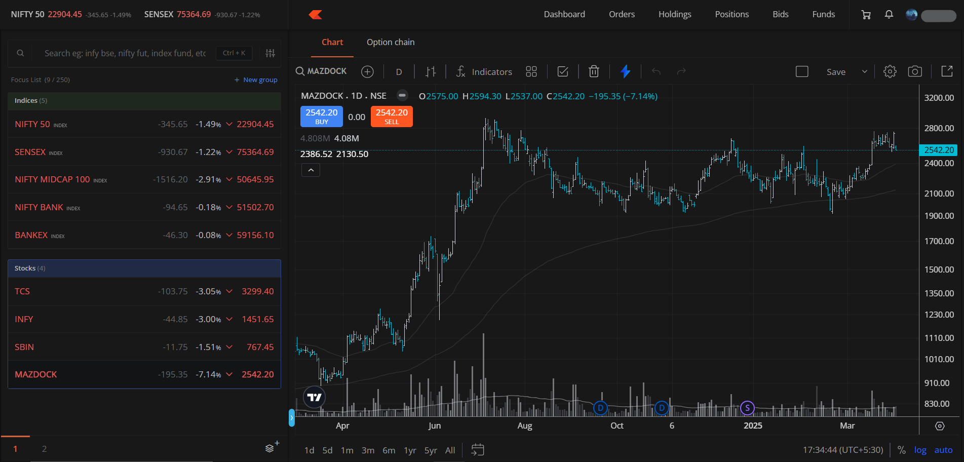 Include GTTs on the chart in the future, which would be a great addition for long-term traders.