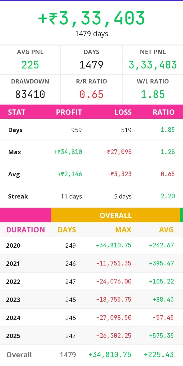 This is for ATM straddle sell at 9:20 AM and exit at 03:15 AM. Screenshot is from a backtesting app I have been working on.